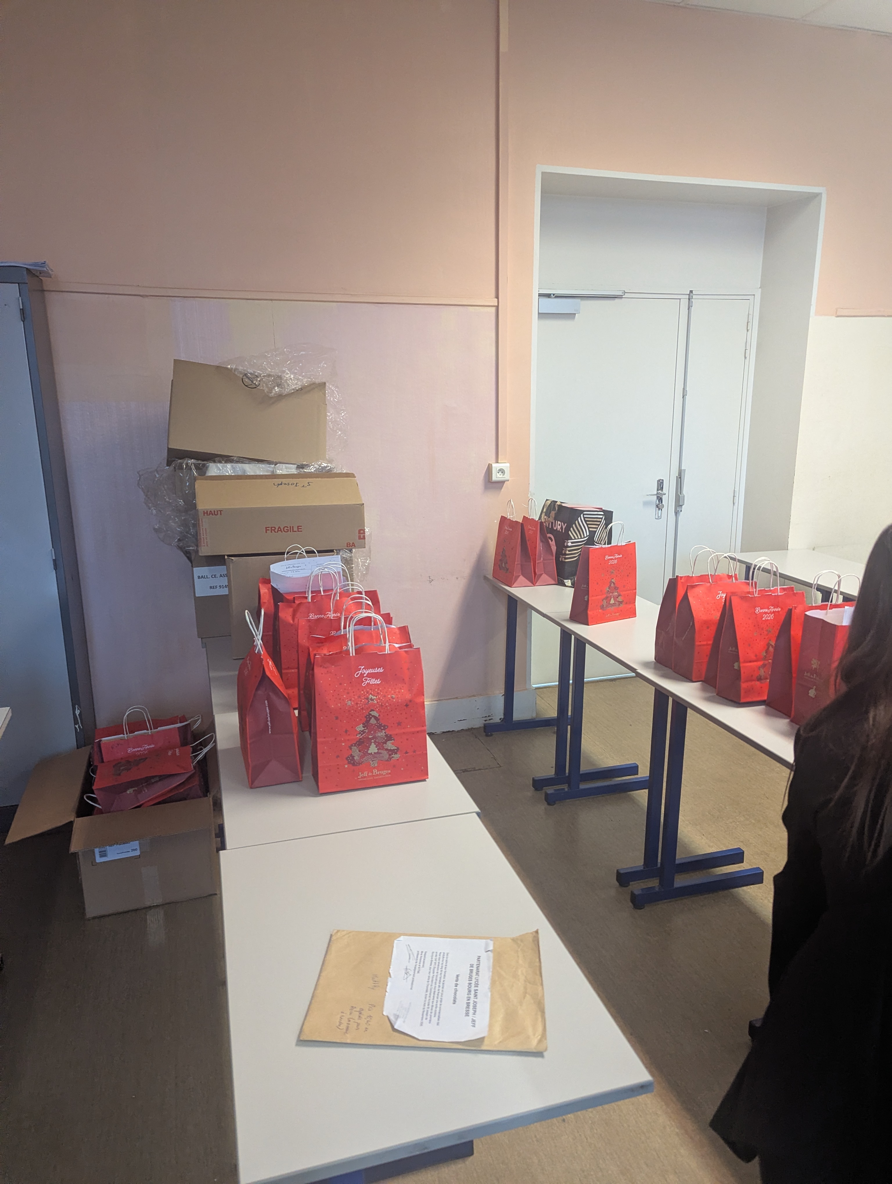 Mi-décembre, ils ont réceptionné et vérifié la livraison puis ont préparé leurs sacs de commande de chocolats afin de livrer leurs clients avant les fêtes. Les bénéfices réalisés permettront de financer de futurs projets pour la classe.